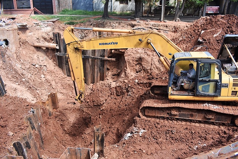El Gobierno provincial concluyó el tendido de cerca de 100 metros de dos baterías de tubos de hormigón armado premoldeado de 2 metros de diámetro con el que reconstruyó el pluvial de la avenida Frondizi, ubicado a más de 10 metros de profundidad. Luego, se arrancó con la construcción de las dos grandes cámaras de enlace, que contarán con acceso para operación y control, que estarán ubicadas en cada extremo del nuevo ducto.