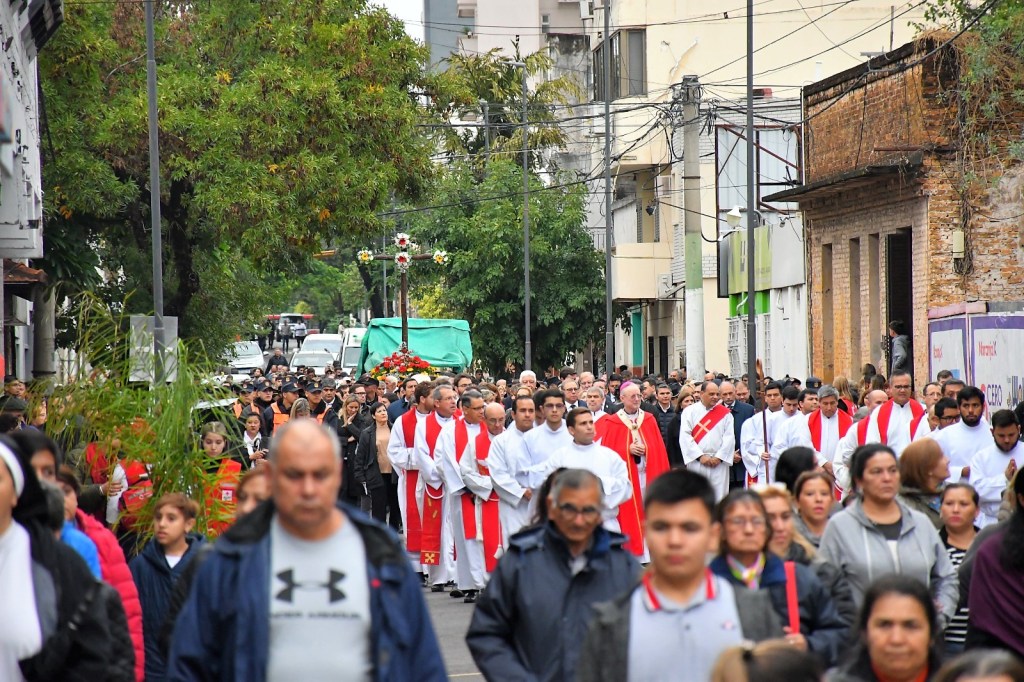 Miles de fieles de la feligresía católica participaron la procesión en conmemoración a la Santísima Cruz de los Milagros, que contó con la presencia del vicegobernador, Pedro Braillard Poccard, que acompañó al arzobispo de Corrientes, monseñor Andrés Stanovnik, quien presidió la tradicional demostración de fe del pueblo de la ciudad de Corrientes al símbolo fundacional, cuya réplica recorrió las calles céntricas junto a imágenes del santoral católico, con cánticos y vivas, saludando a vecinos que salieron a las veredas a pesar de la llovizna.