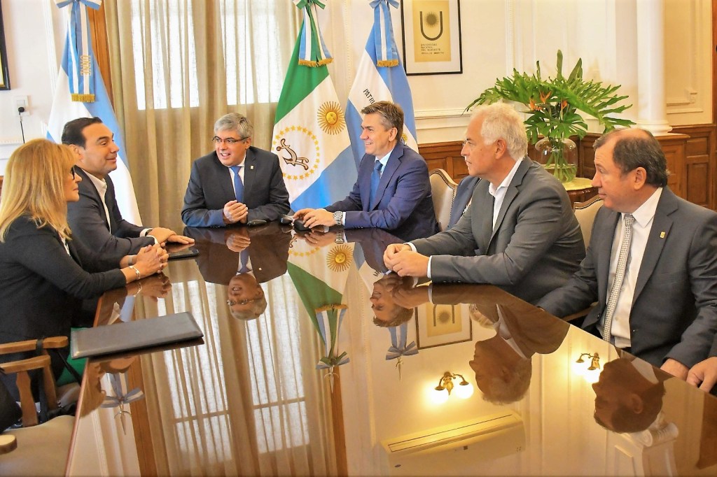 El rector Larroza recibió inicialmente a las autoridades provinciales en su despacho y posteriormente se llevó adelante una conferencia en el salón del Consejo Superior del Rectorado.