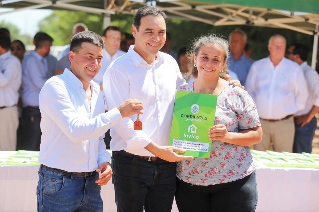 Junto al gobernador participaron el intendente de Colonia Pando, Darío Romero; ministros del Poder Ejecutivo; legisladores; el interventor del Invico, Lizardo González; secretarios y subsecretarios provinciales, adjudicatarios, vecinos y demás autoridades.