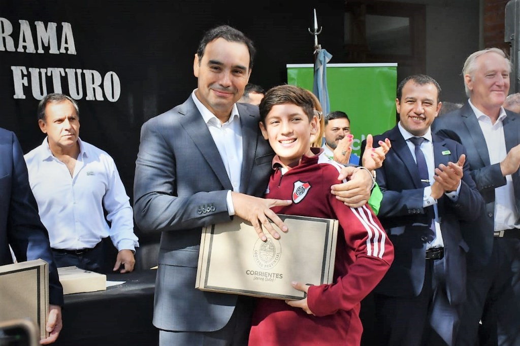 El gobernador Gustavo Valdés presidió este viernes la entrega de 414 notebooks del programa Incluir Futuro en la escuela técnica Construcciones Portuarias y Vías Navegables de Capital. En la oportunidad, fueron beneficiados alumnos del establecimiento anfitrión, como así también de las escuelas Brigadier Pedro Ferré, la Normal José Manuel Estrada y el colegio secundario del Barrio Piragine Niveyro.