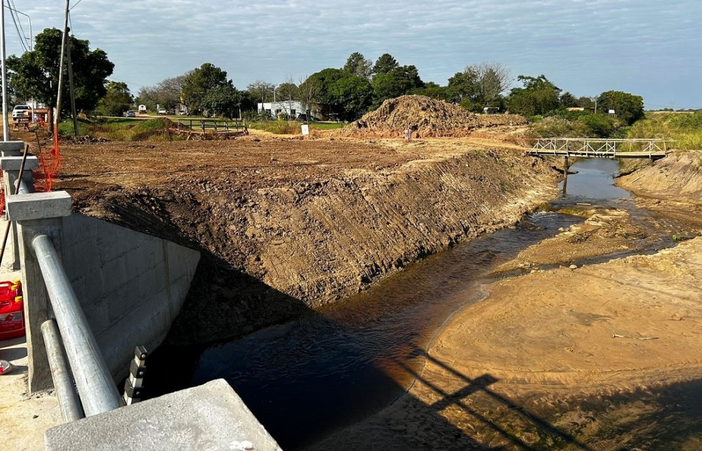 Por otra parte, para darle continuidad al curso de agua se concretó el desvío pasando por uno de los cortes realizados en la vía de acceso a la ciudad a los costados de la zona de obras. La alcantarilla construida servirá en su parte superior como puente conector que dará continuidad a la ruta de acceso a Ituzaingó.