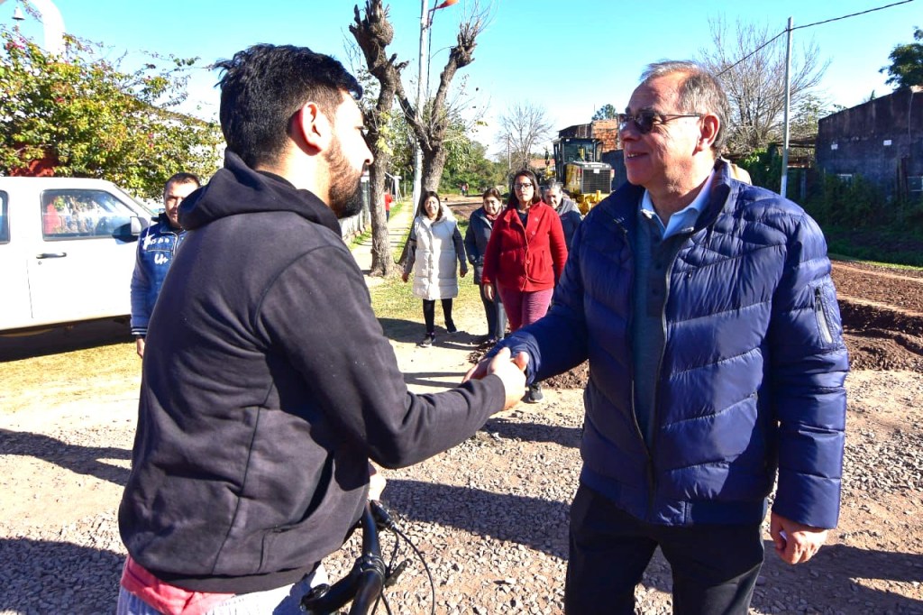 El intendente Eduardo Tassano recorrió, este martes, obras de enripiado y mantenimiento de calles que se ejecutan en el barrio Santa Rita Sur.