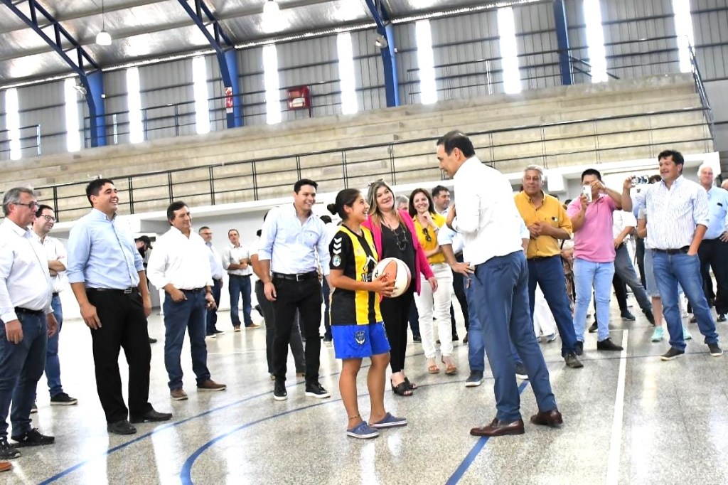 En la tarde de este martes, el gobernador Gustavo Valdés inauguró en Mariano I. Loza el nuevo polideportivo municipal y se comprometió a la construcción de una pileta y de una cancha de fútbol en el predio. Además, habilitó la iluminación de la cancha municipal y el renovado camino de ingreso a la localidad.