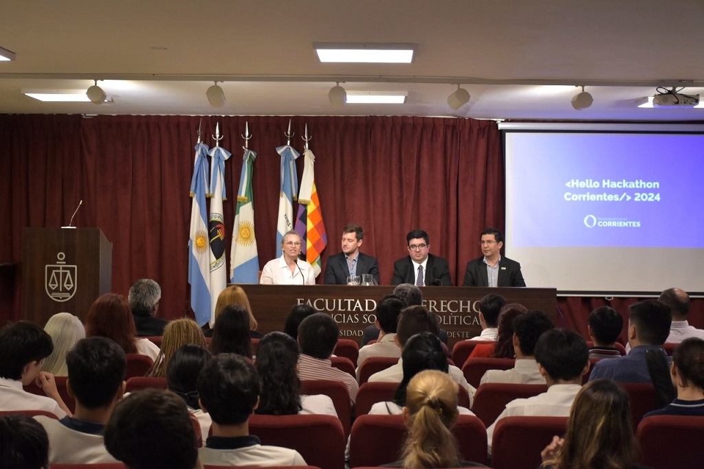 Con el objetivo de promover ideas de innovación tecnológica y promocionar la economía del conocimiento como un sector estratégico para el desarrollo económico de la ciudad de Corrientes, la Municipalidad presentó este lunes el Hello Hackathon Corrientes 2024, mediante un acto realizado en el salón auditorio de la Facultad de Derecho y Ciencias Sociales y Políticas de la Universidad Nacional del Nordeste (Unne).