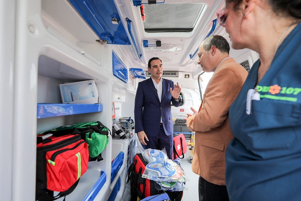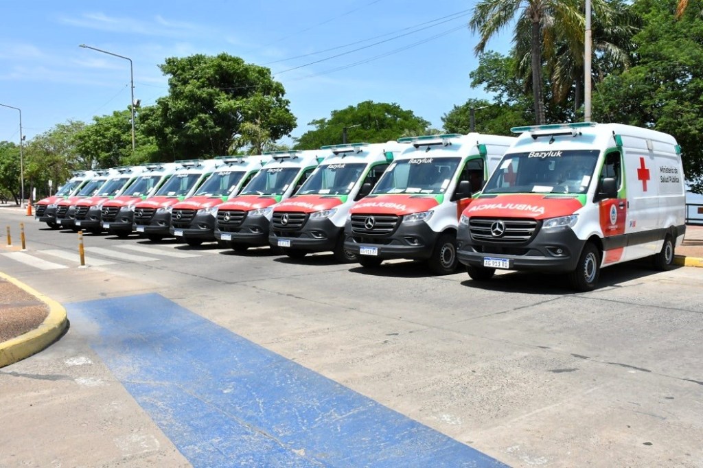 Las ambulancias que refuerzan el parque automotor sanitario de la Provincia son marca Mercedes Benz Sprinter y están equipadas con ventilador de transporte con tubo de oxígeno y fijo, aspirador mecánico, cardiodesfibrilador, tubos de oxígeno, bolsos de insumos y de trauma, y tablas plásticas, entre otros elementos.