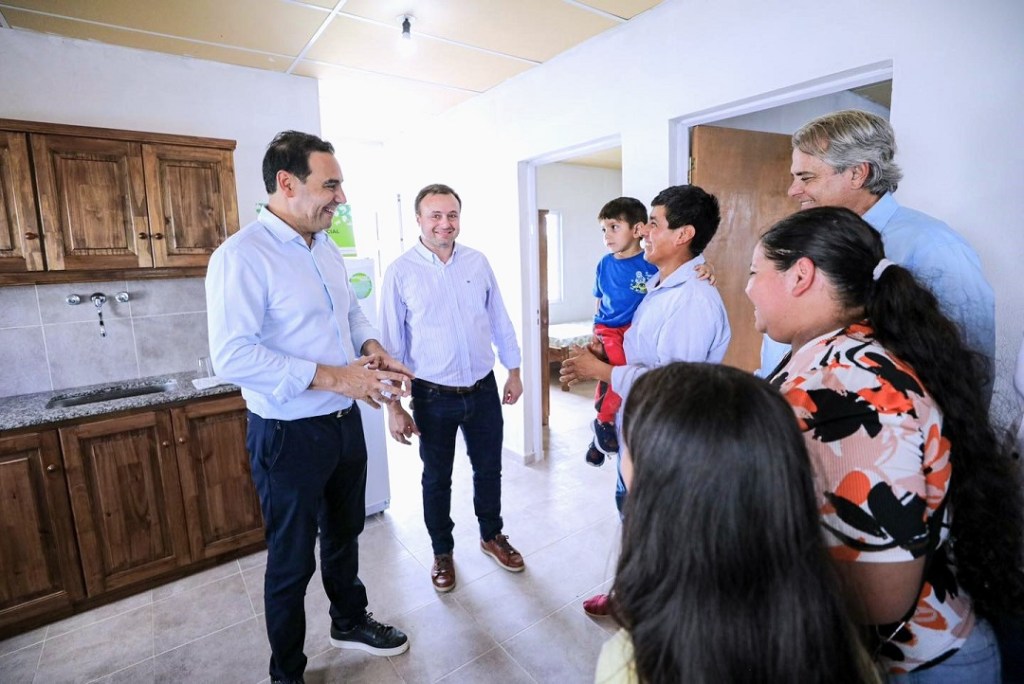 Tras su recorrida en Cecilio Echeverría, el mandatario se trasladó a la localidad de Carolina para realizar la entrega de diez viviendas del programa provincial Oñondivé, en el barrio Jesús de la Buena Esperanza.