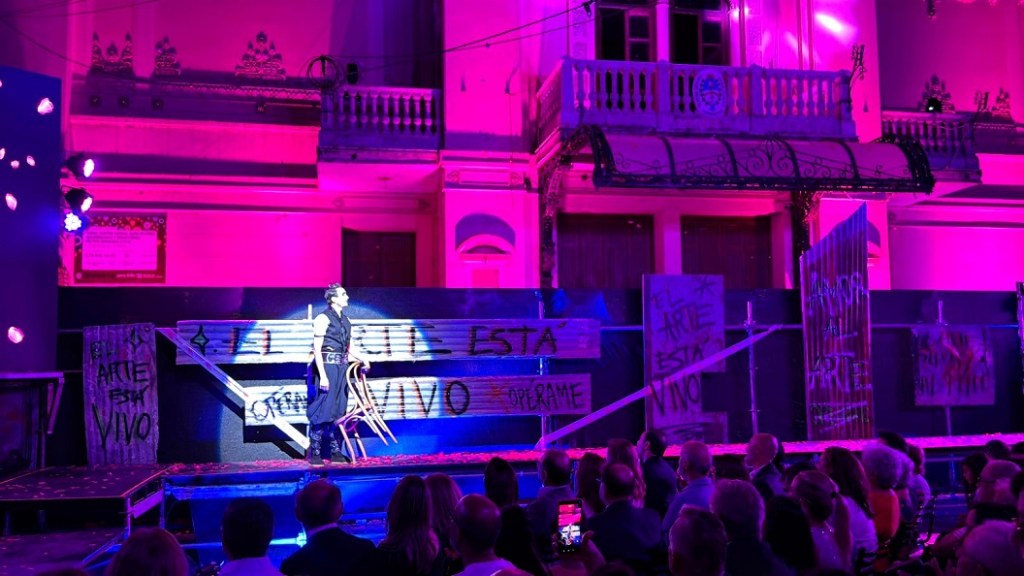 En siete cuadros, mediante la selección de piezas universales de la ópera, en diálogo con canciones emblemas del chamamé, como “Corrientes Soñadora” y “Niña del Ñangapirí”, Núñez Camelino dio cuenta de la historia alrededor del Teatro Vera como casa de las artes y epicentro de la cultura de Corrientes, con un claro mensaje que se repetía en los grafitis que terminaron de dar marco a la escenografía de esta obra inédita, “el arte está vivo” y “sólo el arte salvará al mundo”.