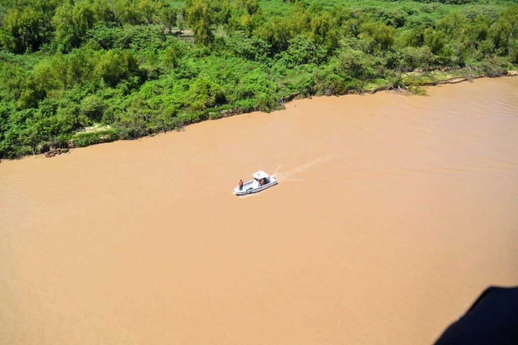 Participan personal de la Unidad Especial de Seguridad Rural y Ecológica de Esquina y Goya en dos Embarcaciones de la Policía, junto a otras dependencias de esa jurisdicción que se encuentran rastrillando zonas ribereñas en colaboración con el personal de la Prefectura Naval Argentina, a quienes se sumaron también Defensa Civil de la Provincia, Bomberos Voluntarios, el área provincial de Flora y Fauna, y personas que navegan en embarcaciones civiles en la zona.