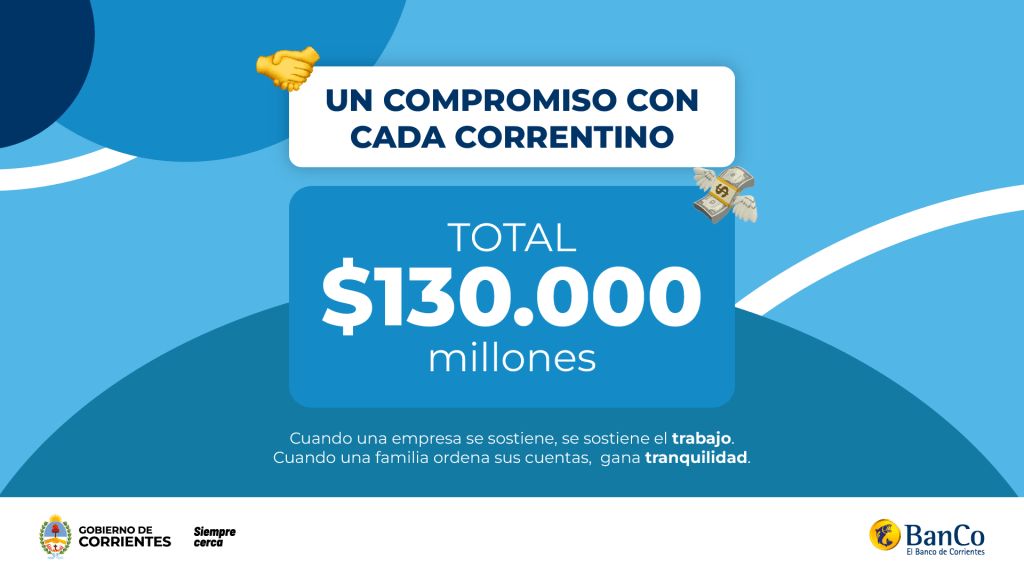 La iniciativa, impulsada por el Gobierno de la Provincia a través del Banco de Corrientes, supone la disposición de más de 130.000 millones de pesos en asistencia financiera, con el objetivo de acompañar la economía local, proteger el empleo y promover la continuidad de proyectos personales y empresariales.